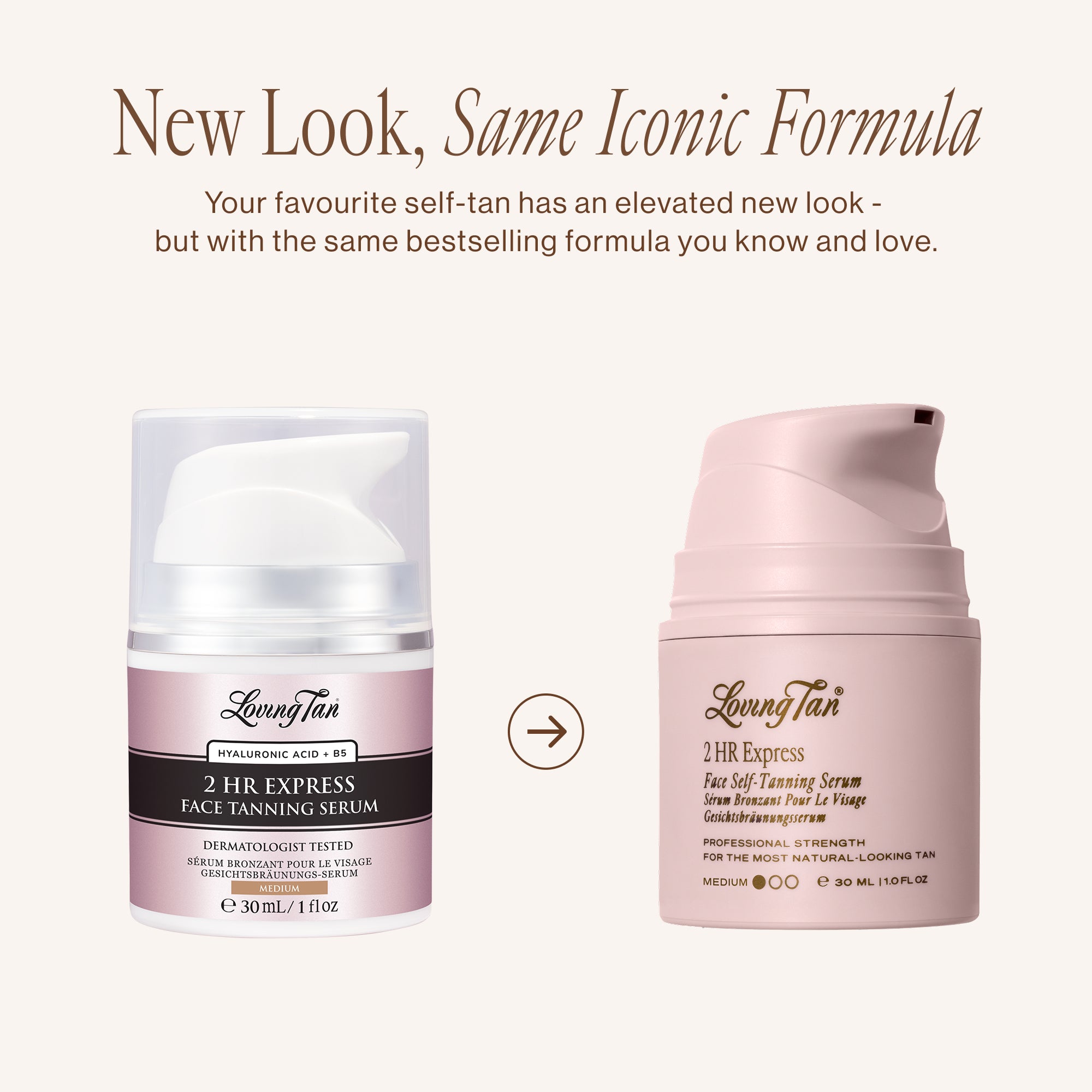 Our 2 HR Express Face Self-Tanning Serum is a lightweight, ultra-hydrating lotion specifically designed for your face and décolletage. Our 2 HR Express Self-Tanning Lotion has been formulated for use on your body.