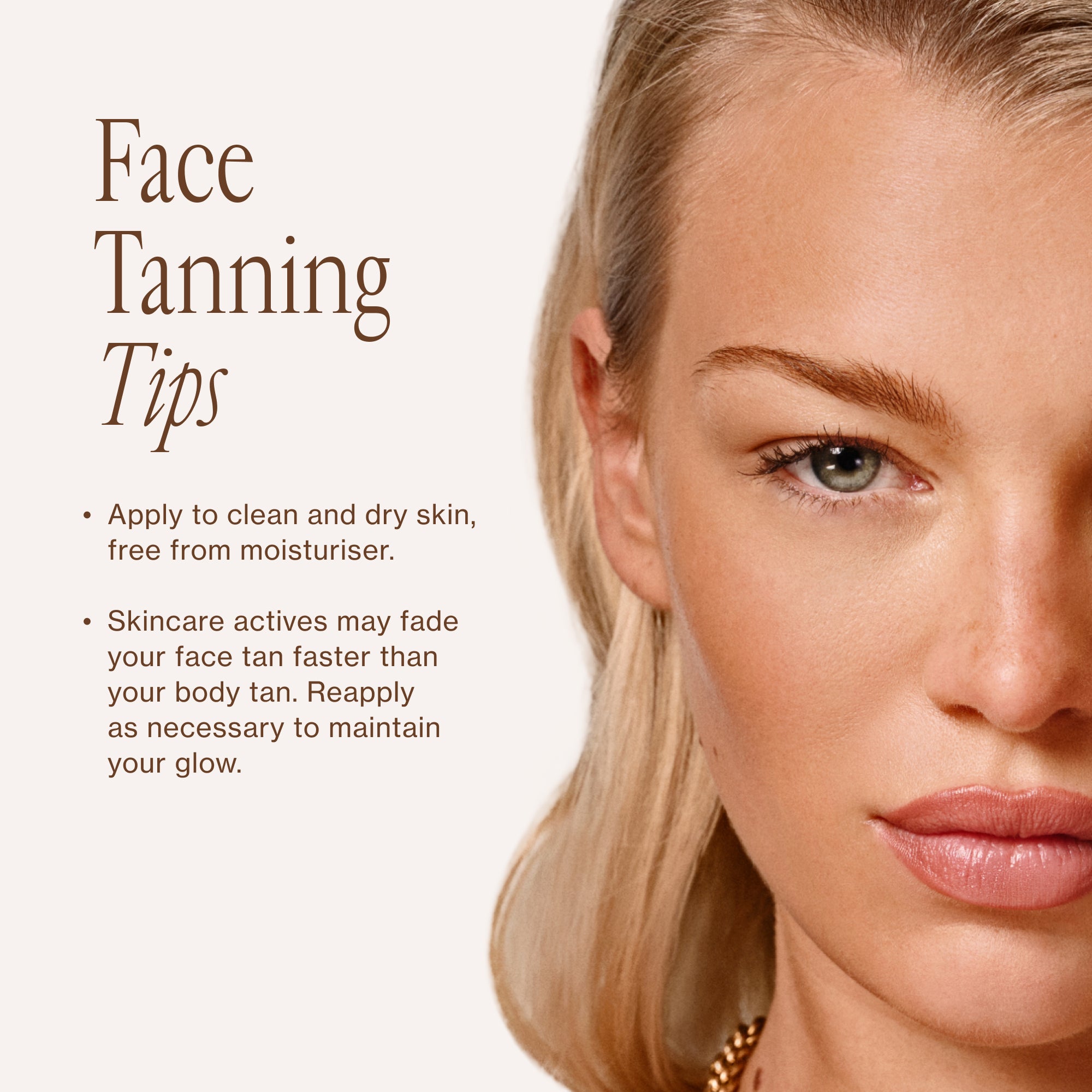 Pro tip: Avoid using moisturiser or skincare actives during this 24-hour period to allow your tan to fully develop.