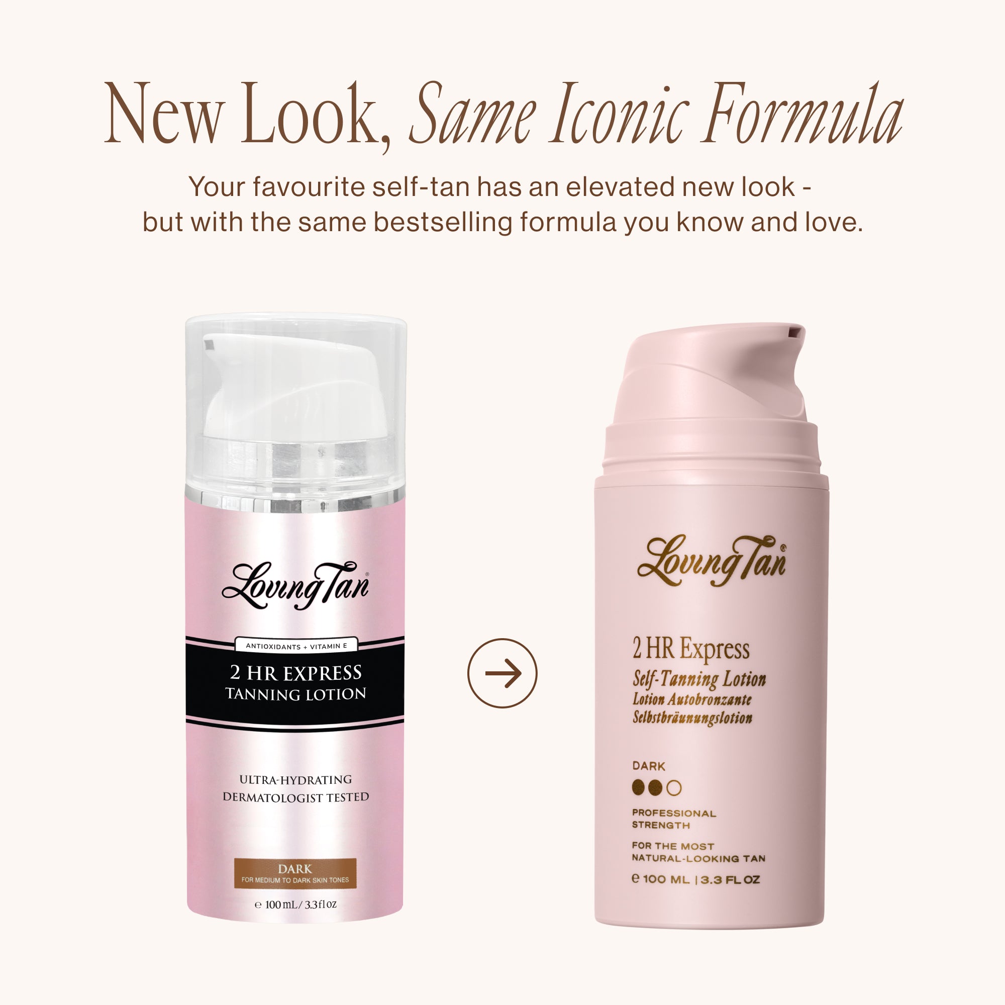 The only difference between the 2 HR Express Self-Tanning Lotion and the 2 HR Express Self-Tanning Mousse is the formula format. Compared to the original 2 HR Express Self-Tanning Mousse, a foam consistency, the 2 HR Express Self-Tanning Lotion is an ultra-hydrating lotion infused with skincare actives.