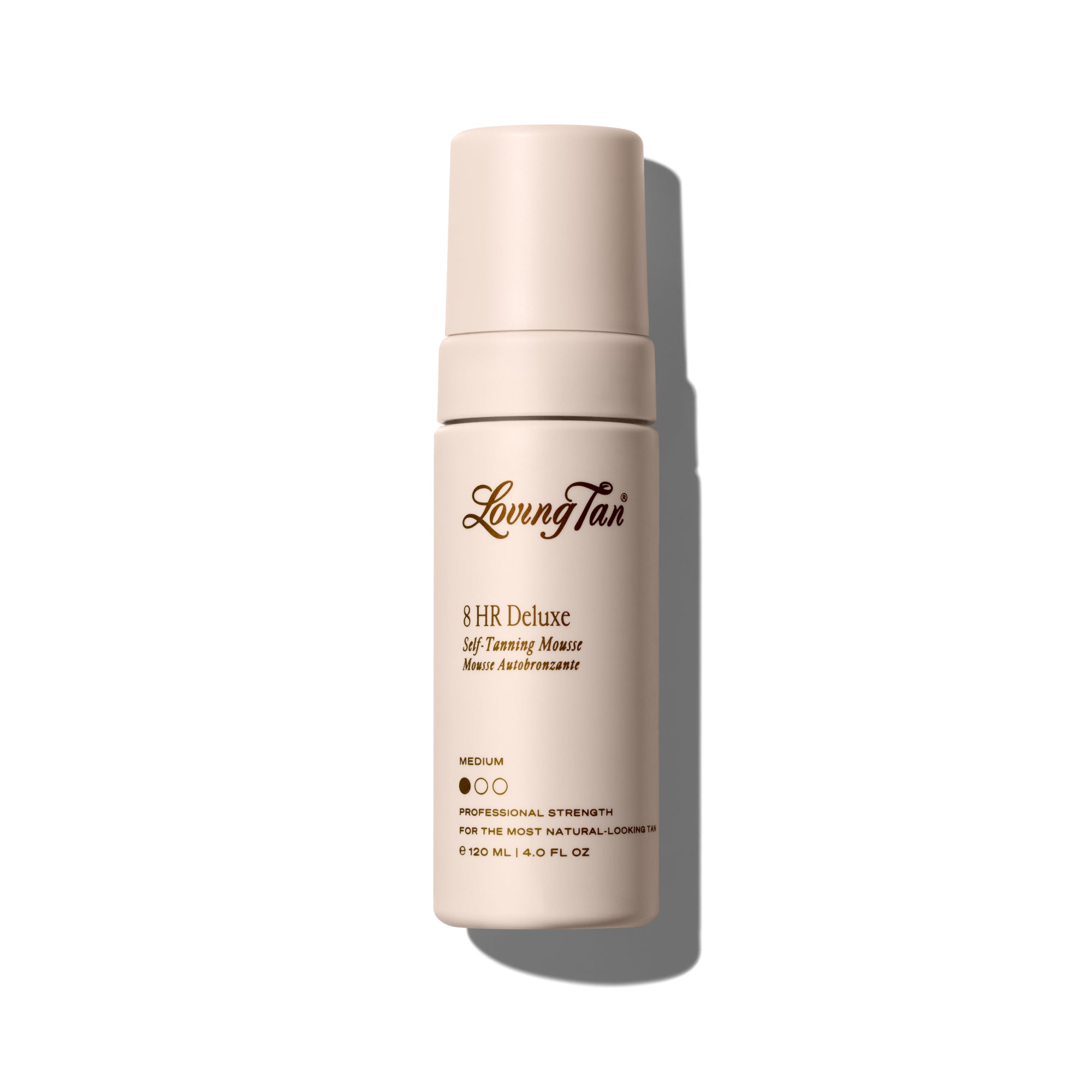8 HR Deluxe Self-Tanning Mousse creates the most natural-looking, long-lasting, streak-free tan; colour guide can be rinsed off in 8 hours.